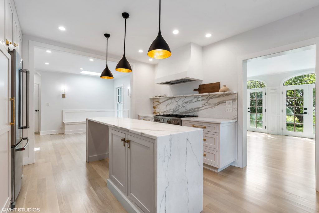 Classic Calacatta Veining: Calacatta Rafa Quartz boasts a classic Calacatta design with bold, sweeping veins that dance across a pristine white background. This timeless pattern adds sophistication to any interior.